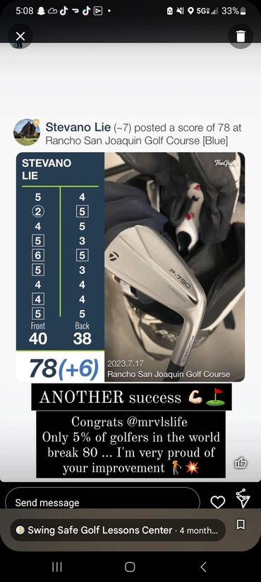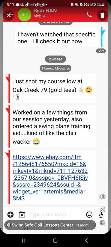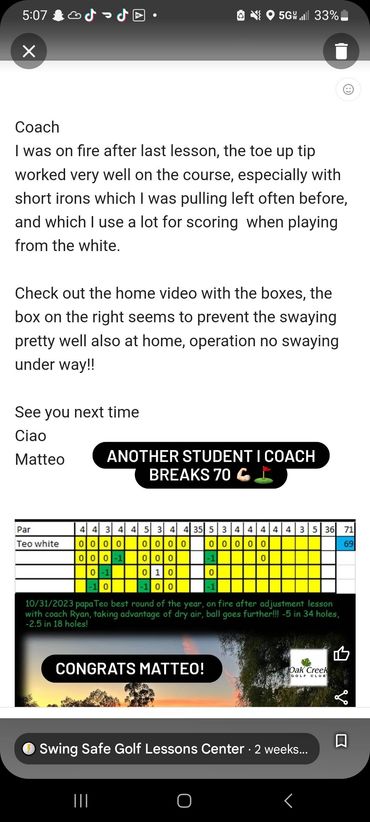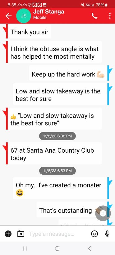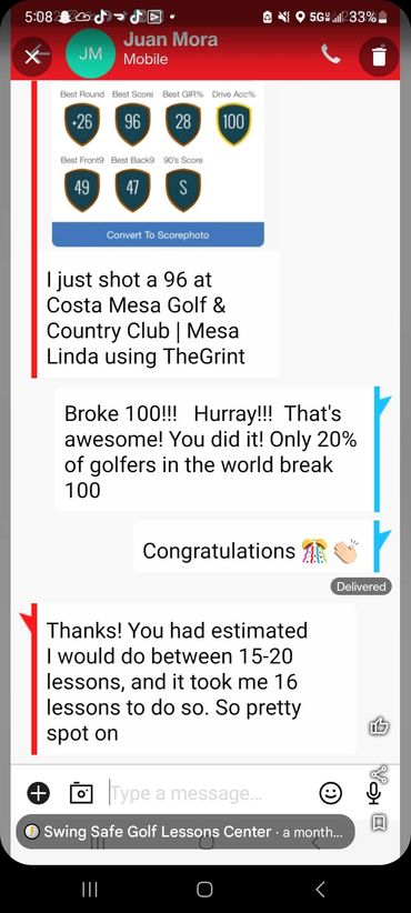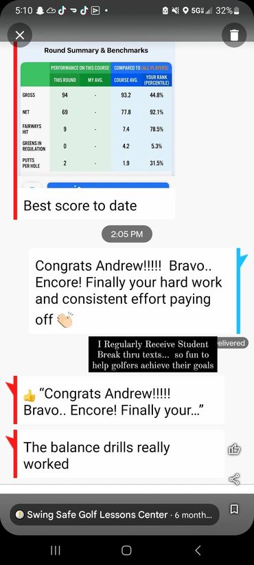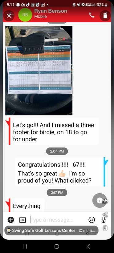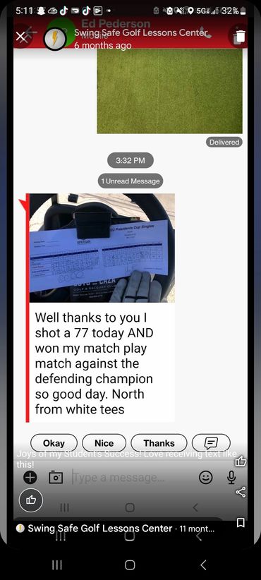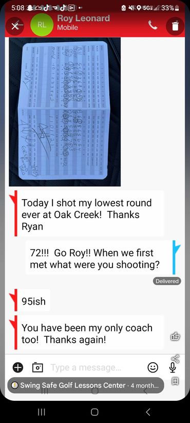 You will receive custom videos for your needs after each lesson. Watch your Videos and Rehearse what I recommend to get results! That's how it works. I even go to the course and play golf with you to help you apply your new form to the course!